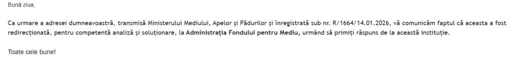 Iar pentru că nu se auzea nimic de programul Casa Verde 2026, am zis să întreb direct la sursă, la Ministerul Mediului. Și le-am scris pe mail. Iar răspunsul lor e din epoca USL. O apreciez pe ministra Oana Buzoianu, chiar apreciez felul cum se luptă cu mafia pădurilor, deșeurilor, apelor, etc. Dar răspunsul primit nu intră la categoria 5 stele. Practic, am primit un răspuns din seria: nu-i la noi problema. Deși e la minister. Ok, AFN implementează proiectul, dar banii și lista de proiecte de la minister vin, iar ministerul să nu știe ce are în ogradă?